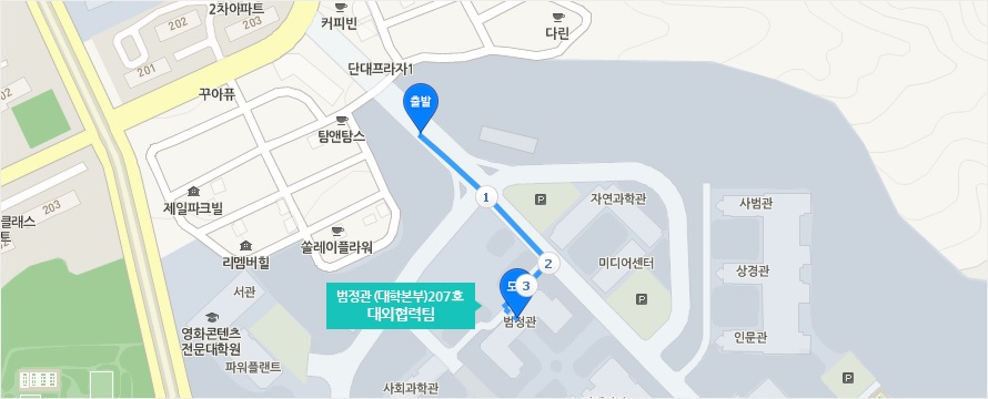 죽전캠퍼스 경기도 용인시 수지구 죽전로 152 (우)16890 대외협력처 대외협력팀 (법정관 207호)