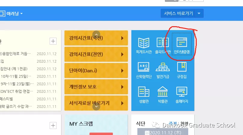 (如图현위치为大学院栋,路线所示为去往 CS센터的方向)